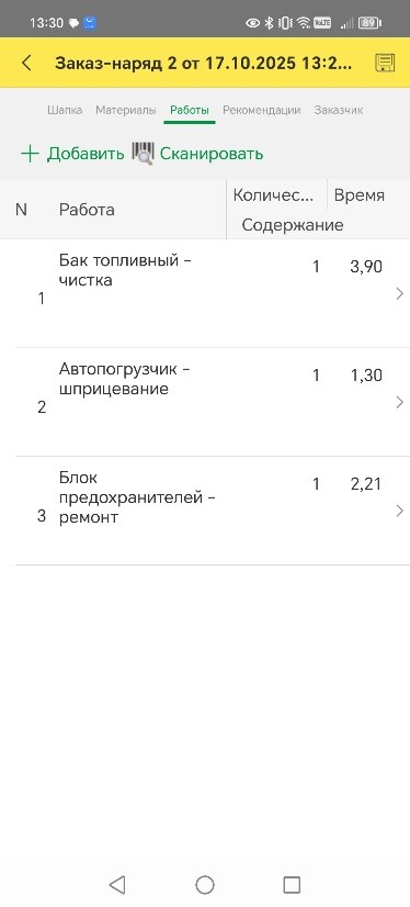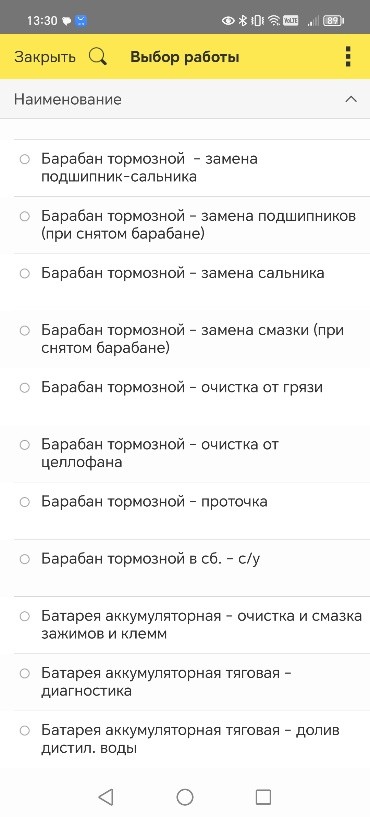 Одной из сложностей стал большой перечень возможных работ, с которым сложно работать на мобильном устройстве. Для удобного подбора работ, чтобы не листать большой справочник на телефоне, был подготовлен «Каталог работ» — бумажный журнал с полным каталогом работ, удобно сгруппированных для пользователя. Из «Каталога работ» работы можно подбирать в документ по штрихкоду. Аналогичным образом, по штрихкоду, можно подбирать и запасные части в документ.