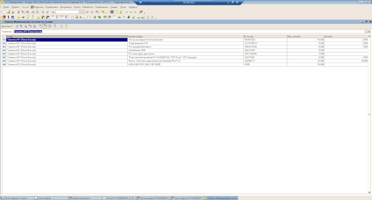 - РегистрСведений.МинимальныеОстаткиНаСкладе