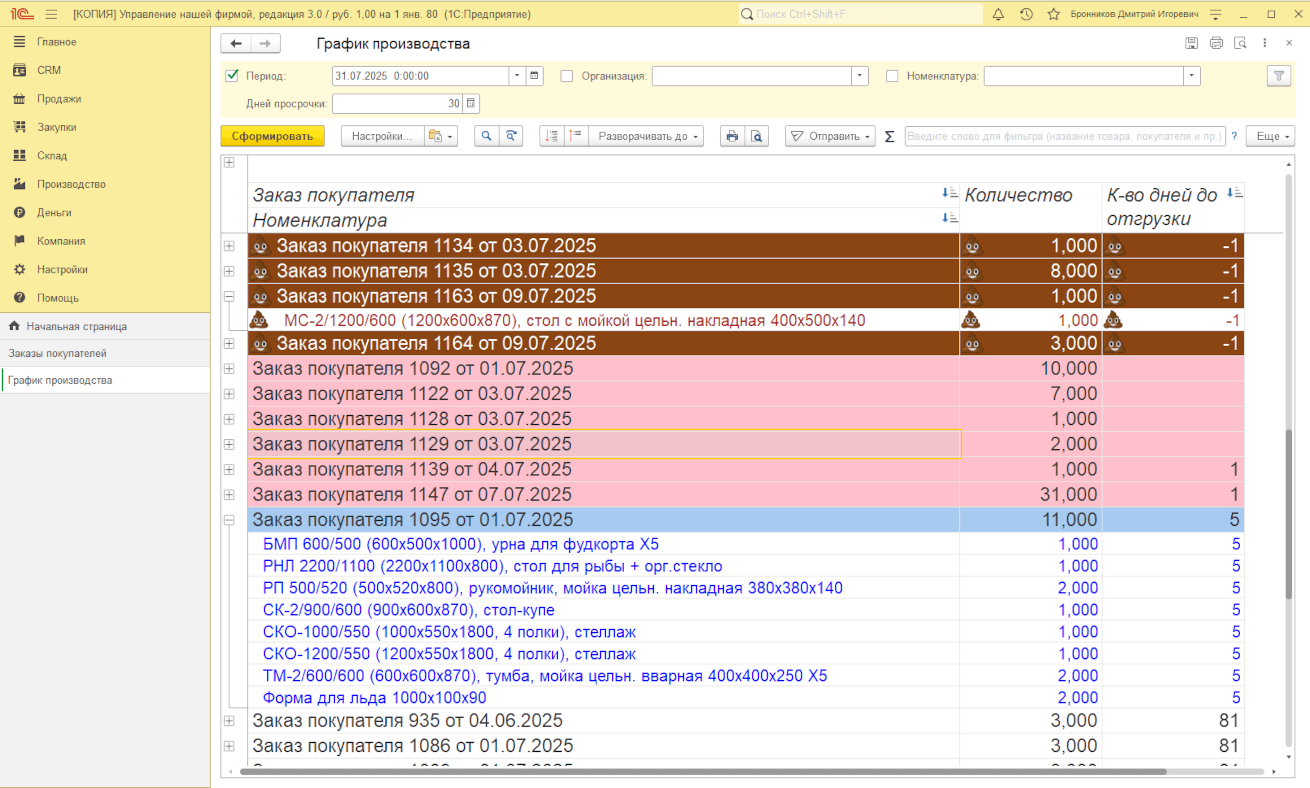 Эти доработки позволили создать комплексное решение, максимально адаптированное под реальные производственные процессы компании, что в итоге повысило производительность и качество управления заказами.