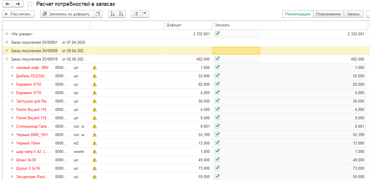 - оптимизацию работы отдела снабжения — исключить срыв производства из-за дефицита материалов и снизить риск появления избыточных складских запасов;