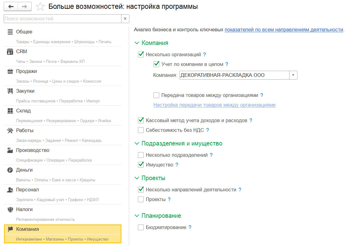 По итогам анализа, выбор был сделан в пользу продукта «1С:Управление нашей фирмой 8» по следующим причинам: