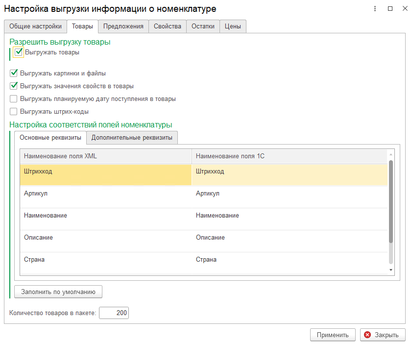 - Первоначальное заполнение настроек модуля 1С:Битрикс для выгрузки данных на веб-сайт;