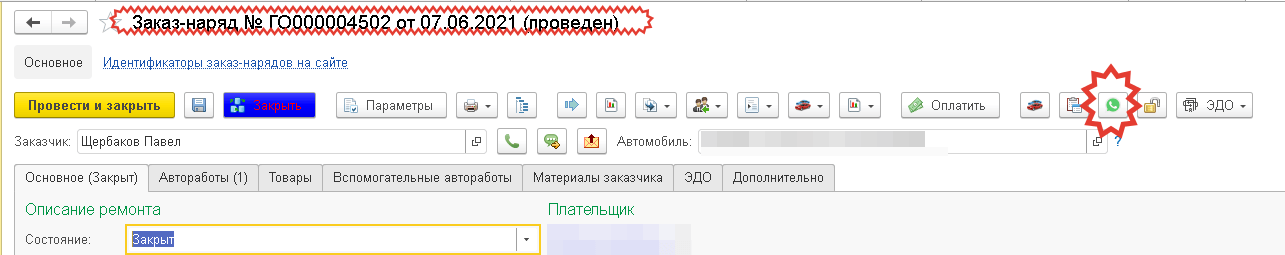 Теперь можно из 1С отправлять клиенту в WhatsApp печатные формы заказ-наряда, а также любые иные файлы.