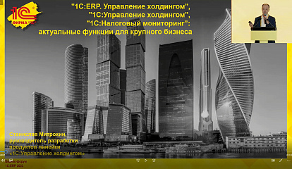 «1С:ERP. Управление холдингом», «1С:Управление холдингом», «1С:Налоговый мониторинг»: актуальные функции для крупного бизнеса(Бизнес-форум 1С:ERP 28 октября 2022 г., Митрохин Станислав, «1С»)