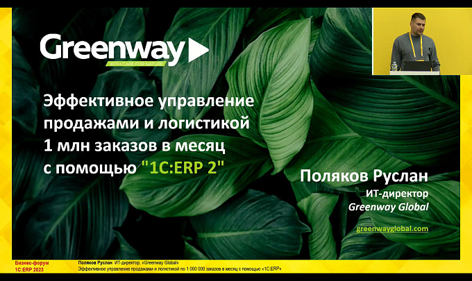 Эффективное управление продажами и логистикой по 1 000 000 заказов в месяц с помощью «1С:ERP» (10-й Бизнес-форум 1С:ERP 13 октября 2023 г., Поляков Руслан, «Greenway Global»)