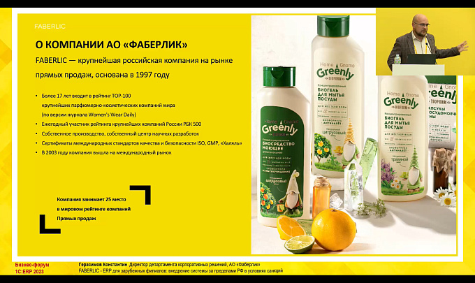 FABERLIC - ERP для зарубежных филиалов: внедрение системы за пределами РФ в условиях санкций (10-й Бизнес-форум 1С:ERP 13 октября 2023 г., Герасимов Константин, АО «Фаберлик»)