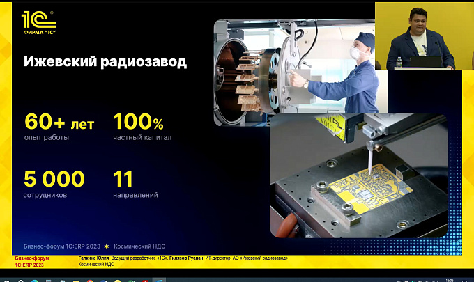 Космический НДС (10-й Бизнес-форум 1С:ERP 13 октября 2023 г., Галкина Юлия, «1С», Гилязов Руслан, АО «Ижевский радиозавод»)