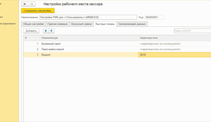 Назначение горячих клавиш и добавление в раздел «избранное» в «1С:РМК»