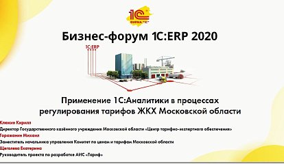 Применение «1С:Аналитики» в процессах регулирования тарифов ЖКХ Московской области (Бизнес-форум 1С:ERP онлайн 18 ноября 2020 г., Клюкин Кирилл, ГКУ Московской области «Центр тарифно-экспертного обеспечения», Горожанин Михаил, «Комитет по ценам и тарифам