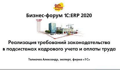 Реализация требований законодательства в подсистемах кадрового учета и оплаты труда (Бизнес-форум 1С:ERP онлайн 18 ноября 2020 г., Толмачев Александр, «1С»)