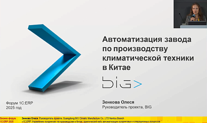 «1С:ERP. Управление холдингом» на производстве в Китае: практический кейс автоматизации холдинговых и операционных процессов (12-й Бизнес-форум 1С:ERP 20 ноября 2025 г., Зенкова Олеся, Guangdong BIG Climatic Manufacture Co., LTD Nantou Branch)