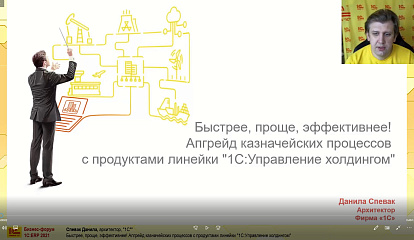 Быстрее, проще, эффективнее! Апгрейд казначейских процессов с продуктами линейки «1С:Управление холдингом» (Бизнес-форум 1С:ERP онлайн 17 ноября 2021 г., Спевак Данила, «1С»)