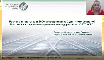 Расчет зарплаты для 2000 сотрудников за 2 дня – это реально! Практика перехода машиностроительного предприятия на «1С:ЗУП КОРП» (Бизнес-форум 1С:ERP онлайн 17 ноября 2021 г., Старкова Наталья, АО «Муромский стрелочный завод»)