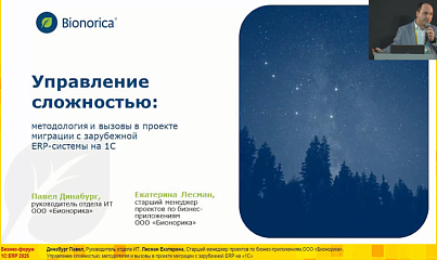 Управление сложностью: методология и вызовы в проекте миграции с зарубежной ERP на «1С» (12-й Бизнес-форум 1С:ERP 20 ноября 2025 г., Динабург Павел, Лесман Екатерина, ООО «Бионорика»)