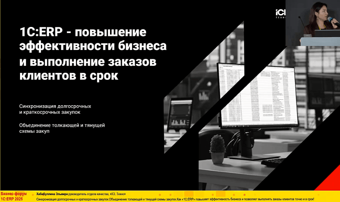Синхронизация долгосрочных и краткосрочных закупок. Объединение толкающей и тянущей схемы закупок. Как «1С:ERP» повышает эффективность бизнеса и позволяет выполнять заказы клиентов точно и в срок! (12-й Бизнес-форум 1С:ERP 20 ноября 2025 г., Хабибуллина Э
