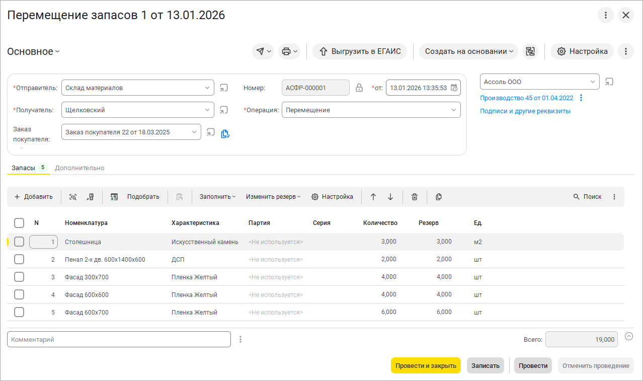 Перемещение между складами. Товары могут перемещаться между складами и ячейками. Оформить перемещение товаров можно с помощью документов «Перемещение запасов» и «Перемещение по ячейкам».